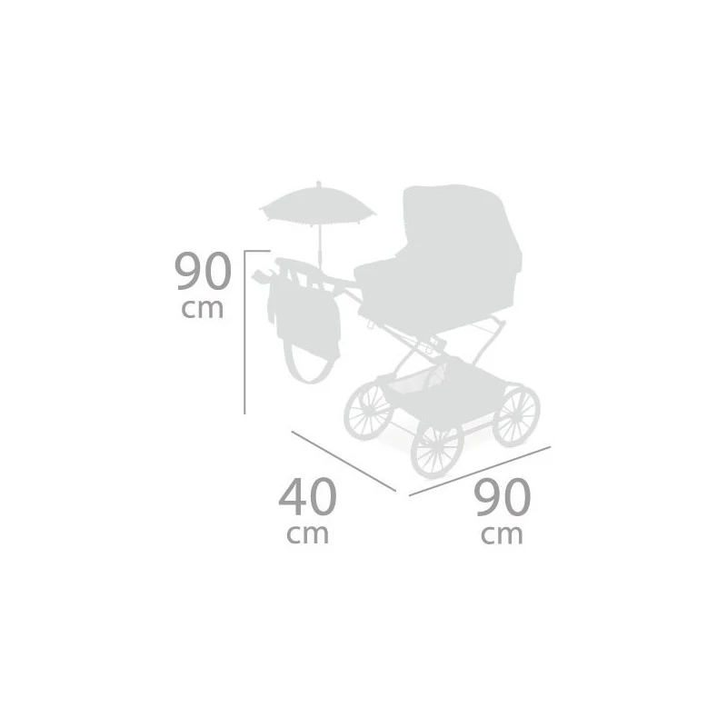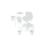 Κατά προσέγγιση διαστάσεις καροτσιού: 90 cm ύψος (μέχρι το τιμόνι) x 40 cm πλάτος x 90 cm μήκος.