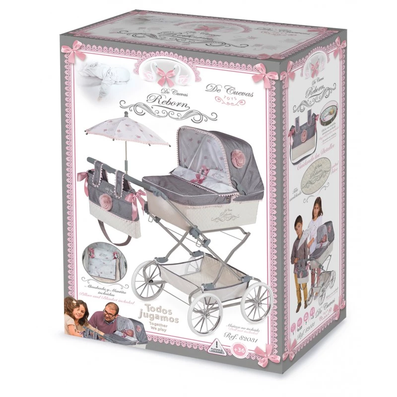 Η συσκευασία περιλαμβάνει: Καρότσι κούκλας Reborn με τσάντα, ομπρέλα και μαξιλάρι.
